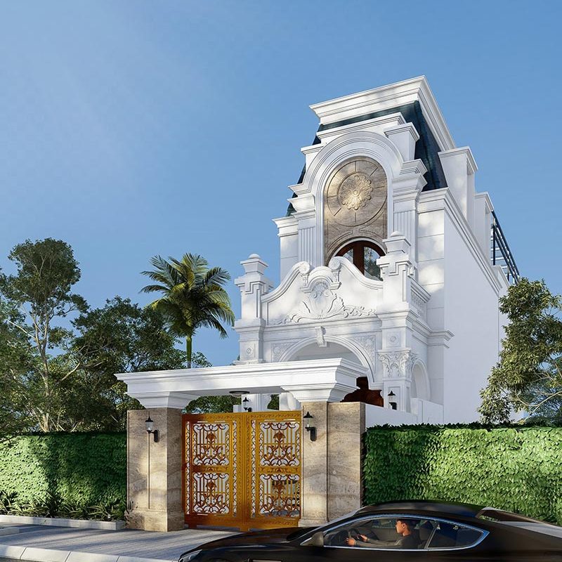 Anh Hưng chủ nhà có nhu cầu xây dựng kết hợp hài hòa giữa vẻ đẹp cổ điển và tiện nghi hiện đại. Ngôi nhà mang phong cách kiến trúc cổ điển với các chi tiết hoa văn tinh xảo, cột trụ uy nghi và ban công được trang trí công phu, thể hiện sở thích của chủ nhà đối với sự sang trọng và quý phái. Đây là lựa chọn hoàn hảo cho những ai yêu thích nét đẹp truyền thống nhưng vẫn muốn kết hợp với phong cách sống hiện đại. Anh muốn tối ưu hóa diện tích sử dụng trong điều kiện không gian hạn chế, đặc biệt ở các khu vực đô thị. Kiểu thiết kế này không chỉ đảm bảo đầy đủ các không gian chức năng mà còn tạo cảm giác thoải mái cho người sử dụng. Phần mái bằng có thể được tận dụng làm sân thượng hoặc tầng lửng, đáp ứng nhu cầu không gian ngoài trời cho các hoạt động thư giãn, giải trí.